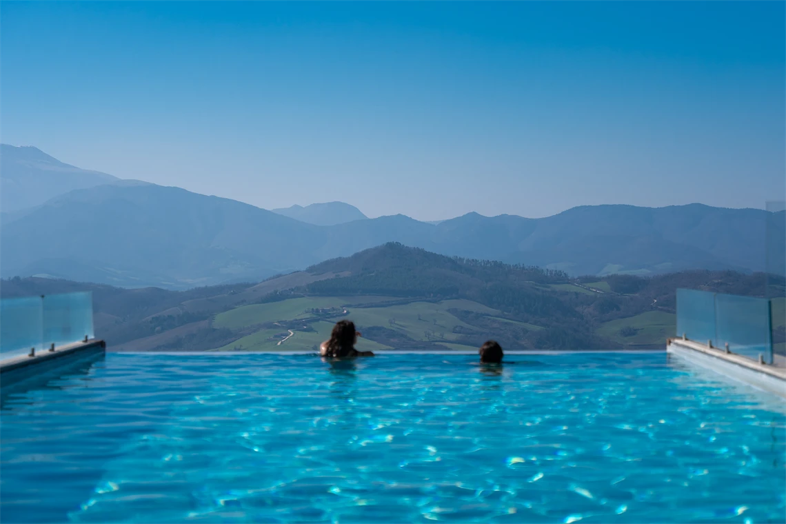 - ingresso alla Infinity Pool e all’area benessere (sauna finlandese, bagno turco, docce emozionali, vasca idromassaggio, area relax con parete di sale e angolo tisane)